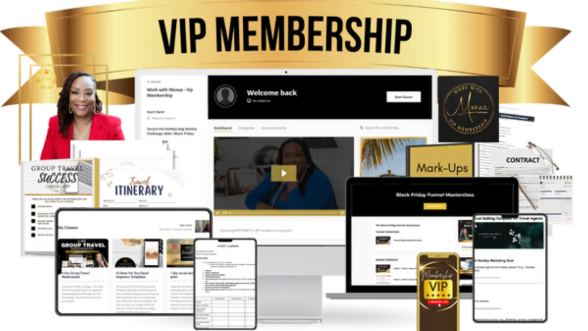 This monthly membership helps you level up as a Travel Agent by teaching you how to grow and scale your business with live and on-demand training, a supportive community, expert guidance, and exclusive coaching.